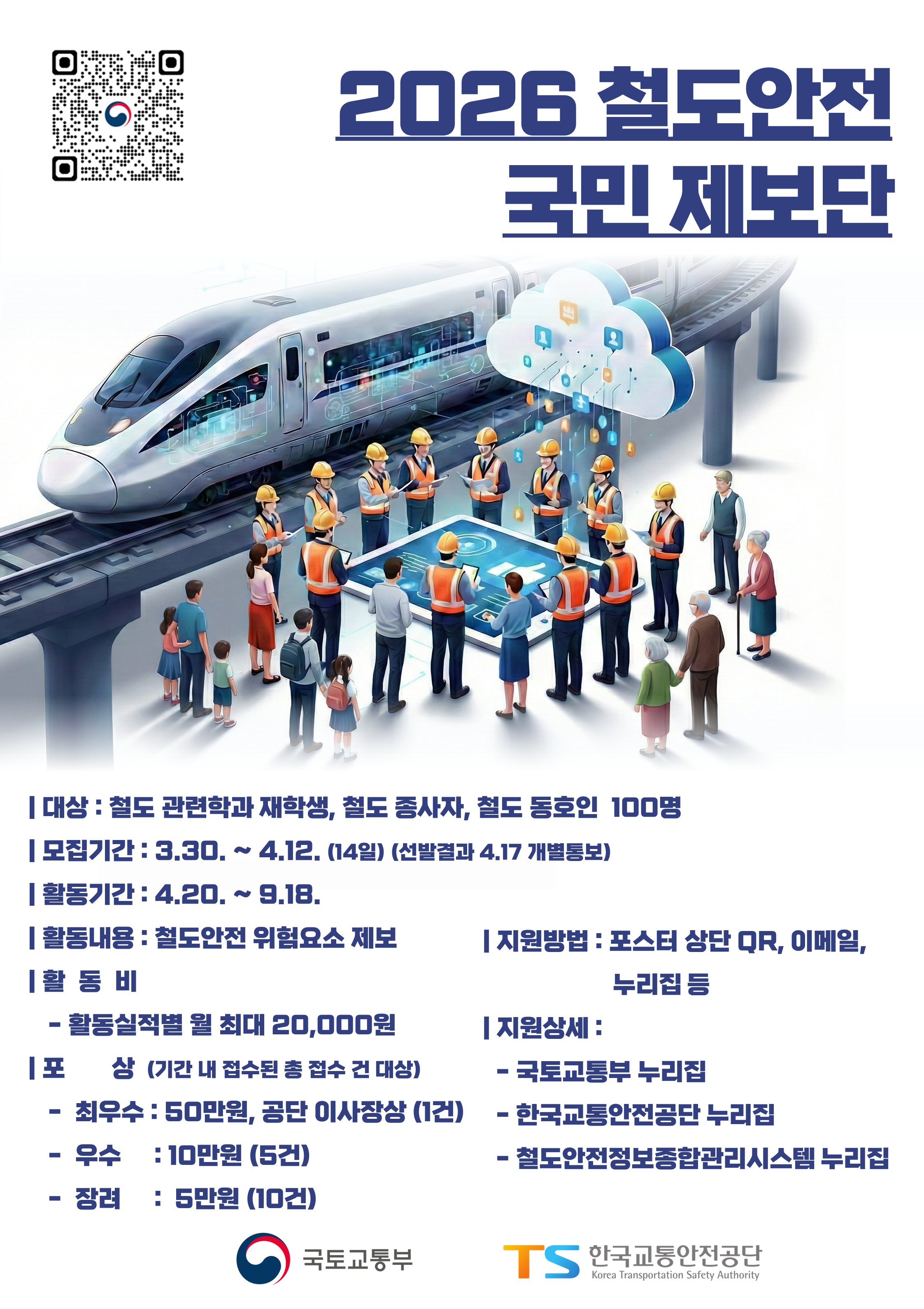 커뮤니티 공지사항 포토갤러리 취업정보 학과뉴스 재학생 Q&A 공지사항Home커뮤니티공지사항 2026 철도안전 국민제보단 모집 안내 작성자 : 학과관리자 | 작성일 : 2026.03.20 | 조회수 : 62 첨부파일 2026 철도안전국민제보단_포스터(a3,30cm x 42cm).png 목록 이전글 이전 글이 없습니다. 다음글 2026학년도 2학기 WSUK(카자흐스탄) 교환학생 모집안내